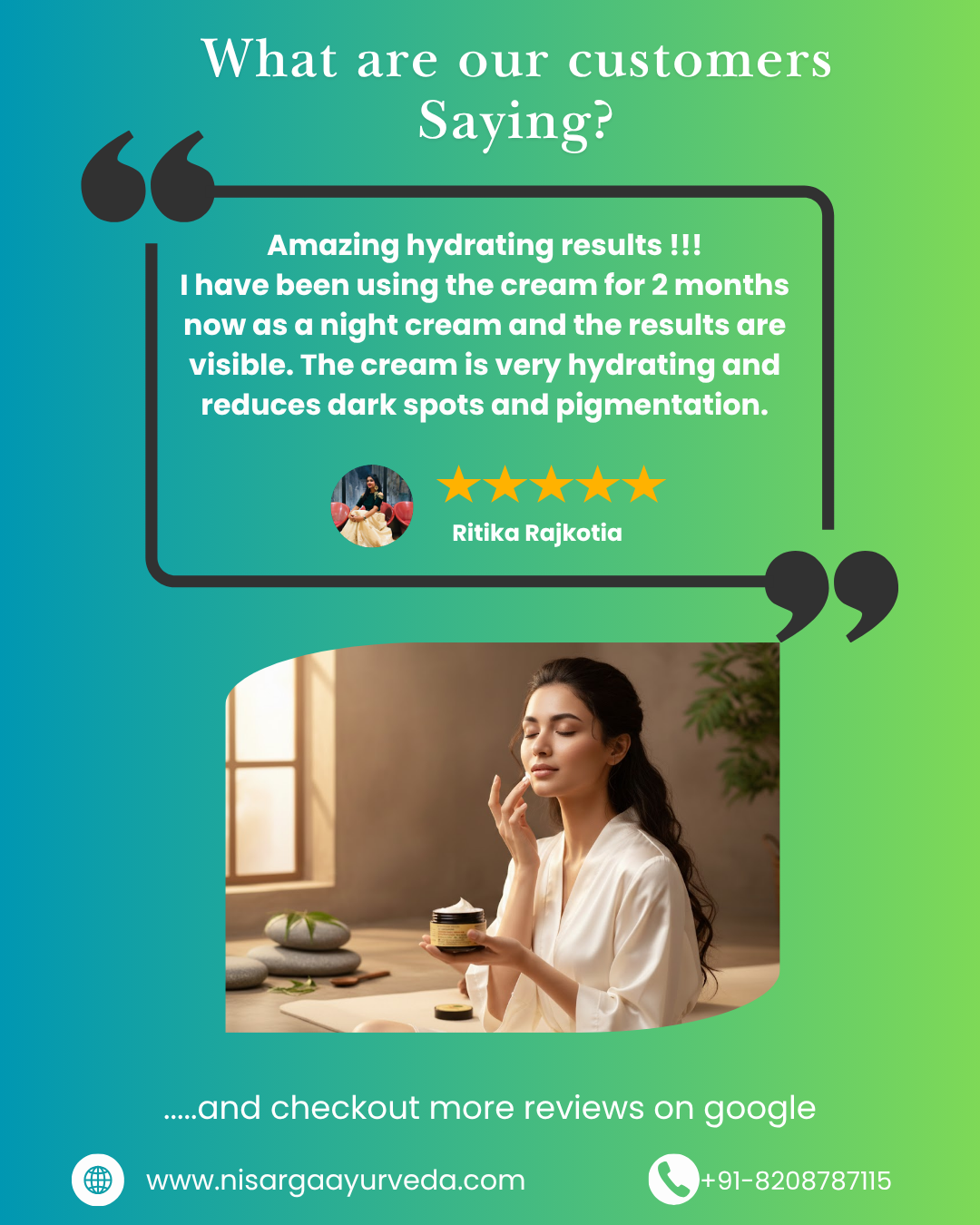 Amazon Customer Its amazes us to believe Ayurveda science has such a simple yet very potent formula derived from ghee, that protects & nourishes without using any chemicals or complex procedures.According to my wife, who has been purchasing Nisarga's product since last year, this is the best Shatadhauta-ghrita cream she has used and its so reasonably priced too.We are extremely satisfied with this product (have re-purchased this product 3 times).